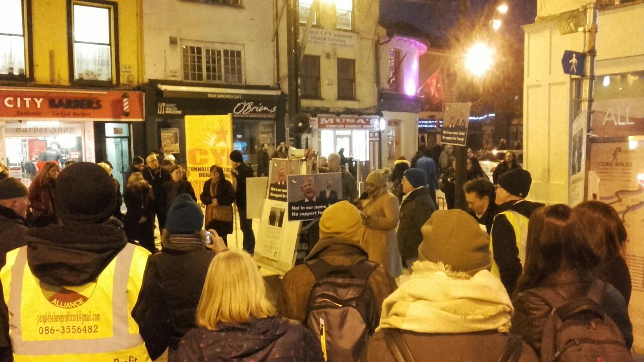 On January 20, People Before Profit in Cork were proud to host a demonstration against Donald Trump’s hateful and toxic political agenda. The event was a show of resistance of the hard-right policies which Donald Trump embodies and a show of solidarity to those in the US who are fearful of what a Trump presidency may mean for them.